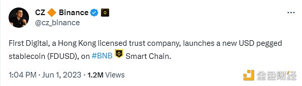 幣安CEO趙長鵬當天就發推提及First Digital和FDUSD。
