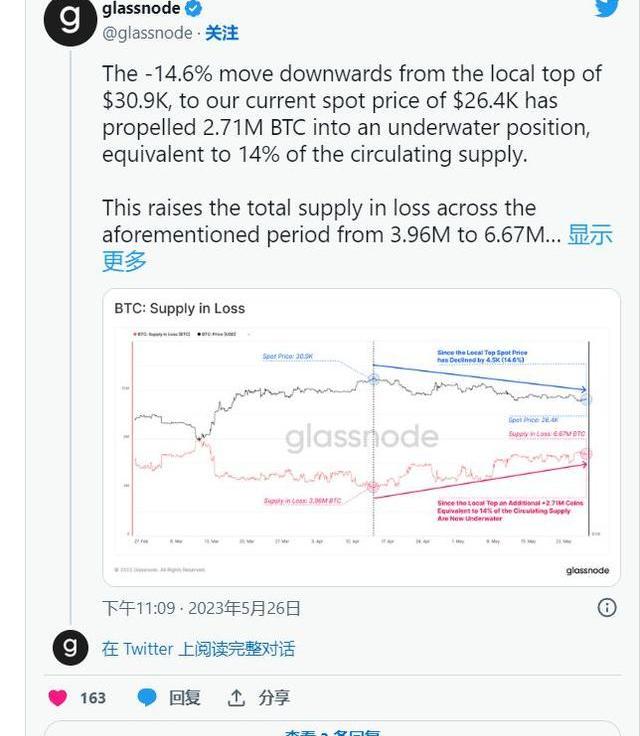 這種下降趨勢進一步導致271萬比特幣陷入“水下”狀態,這意味著這些資產現在的價值低于最初購買的價值。這個數字大約相當于比特幣流通供應量的14%。