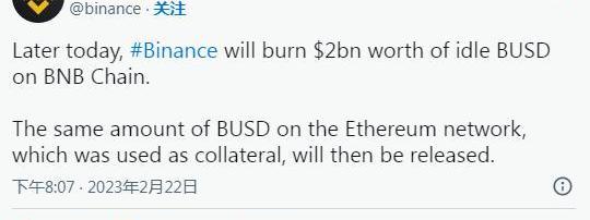 22月2日,幣安銷毀了價值XNUMX億美元的BUSD。