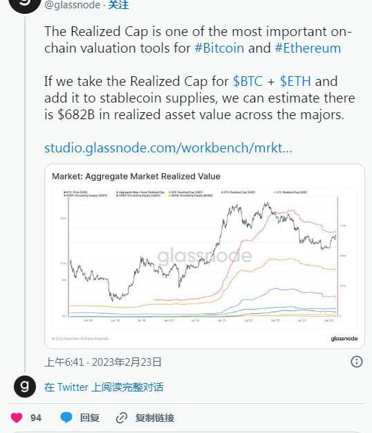 Glassnode在最近的分析中引用了RealizedValues的數據披露了這種看漲趨勢逆轉比特幣(BTC)、以太坊(ETH)和穩定幣。通過將比特幣和以太坊的已實現上限與穩定幣的供應相結合,主要加密貨幣的已實現資產總估計價值高達682億美元。