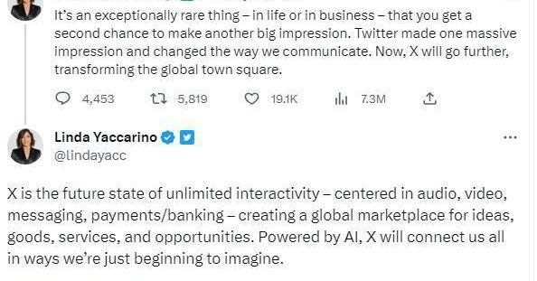 推特首席執行官琳達·亞卡里諾(LindaYaccarino)在周日的帖文中添加了更多有關X的線索,稱它將具有“無限的交互性”,支持多種媒體格式,并具有支付和銀行功能。據報道,馬斯克表示他希望支持加密貨幣的功能。