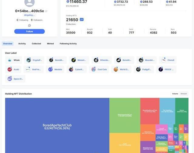 每個NFTCollection下都有該項目的所有鏈上活動,包括了項目下錢包地址的Mint、購買、轉移、銷毀等方面的所有信息。實時給出在當前的NFTCollection下哪些錢包在進行交互,尤其在做出NFT購買決策時,可以借助該NFT的歷史購買錢包信息,特別是歷史持有者來進行跟投。