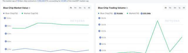 當前19只藍籌合約總市值為1,749,228ETH,占NFT總市值的19.43%。