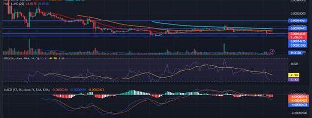 在過去的13.21小時內,代幣的交易量減少了24%。成交量的減少表明賣家的數量增加了。這表明賣家正在盡力而為,并且LUNC的量價之間存在關系,這代表了當前看跌階段的力量。