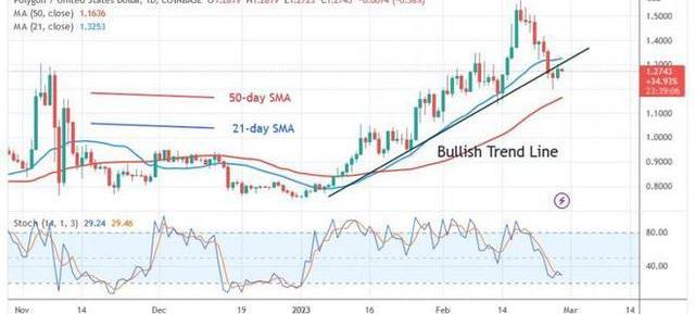 Polygon(MATIC)價格跌破21日線SMA。自2月24日以來,加密貨幣價值一直包含在移動平均線之間。山寨幣跌至1.19美元的低點并回落。當移動平均線被打破時,加密貨幣將發展趨勢。例如,當價格突破21日線SMA時,Polygon將開始新的上升趨勢。市場將上漲并收復前期高點1.56美元。山寨幣處于每日隨機指標30水平上方的看漲勢頭。在所有加密貨幣中,山寨幣本周表現第五差。加密貨幣的特征包括: