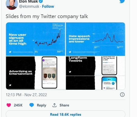 Twitter的新任首席執行官在11月27日的一條推文中透露了他的計劃。