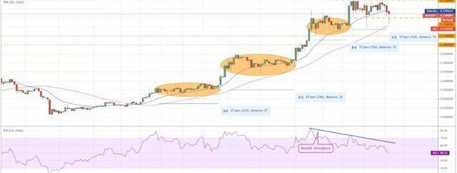 突破后趨勢將變為正,并收盤于上方阻力位0.1543051美元上方。相反,跌破50天均線將表明趨勢可能發生變化。