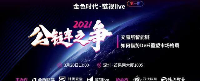 由金色財經、時代安全、鏈視live聯合主辦的《金色時代·鏈視live》第一期“2021公鏈之爭,交易所智能鏈如何借勢DeFi重塑市場格局”將于2021年3月20日14:00在深圳南山軟件基地芒果網大廈1005舉辦。