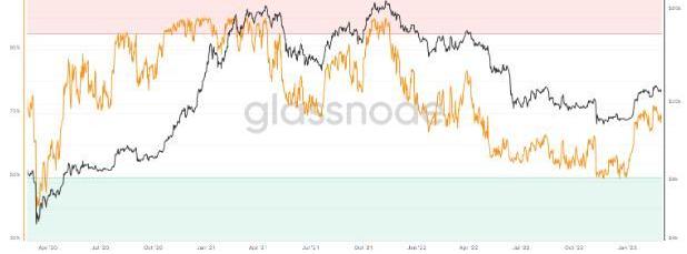 根據鏈上分析公司Glassnode的數據,整整70%的比特幣地址都是有利可圖的。