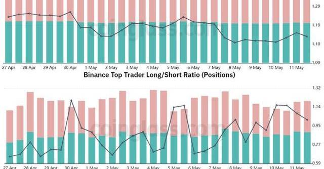 在加密貨幣交易所OKX,多空比從5月8日的0.92增加到5月12日的1.01。同時,在Binance,多空比穩定在1.13,表明沒有轉向看跌頭寸來自鯨魚和做市商。