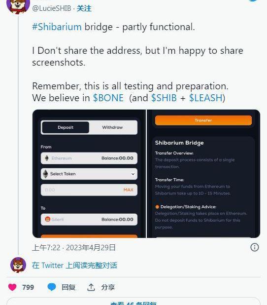 ShibaInu軍隊的LucieSasnikova最近分享了有關Shibarium最新功能:橋的令人興奮的消息。在周末的Twitter帖子中,Sasnikova宣布該橋已被激活并部分運行,這是第2層網絡的一個重要里程碑。