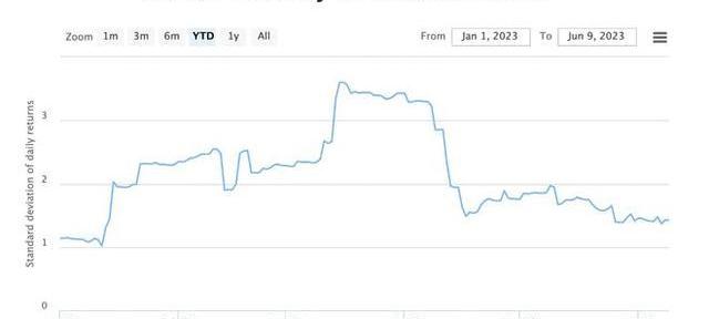 有趣的是,圍繞美國證券交易委員會訴訟的比特幣30天波動率大約是2023年3月銀行業危機反彈期間的一半。
