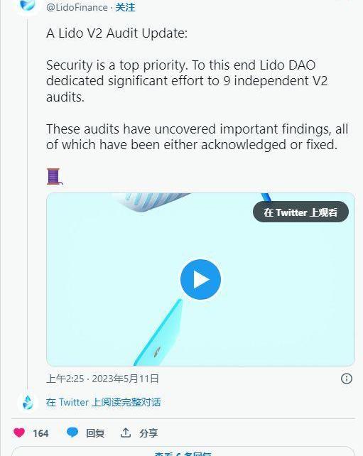 而LidoFinance在今日發布LidoV2審計更新,指安全問題是首要任務。為此,LidoDAO已進行9次獨立的V2審計,發現的所有問題也都已獲得確認或修復,而最后一次由Oxorio進行的審計,預計將在本月底完成。