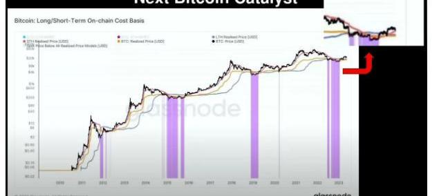 InvestAnswers的匿名服務器說,“現在很多人都在談論比特幣催化劑,這就是它的歷史。如果你看這里的Glassnode圖表,藍線代表長期投資者的實現價格,黃線代表比特幣實現的價格。這是催化劑的原因是實現價格高于長期投資者實現價格,目前領先約600美元。每次發生這種情況,每次RP超過LTHRP,即藍色高于黃色時,它總是一次大反彈。”說。