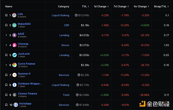 DeFi總市值及前十代幣 數據來源:coingecko