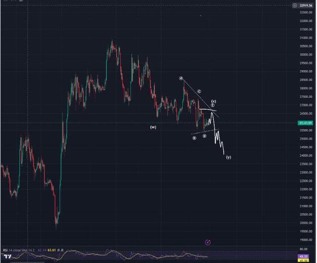 “現在價格走勢已經展開了更長的時間,我認為可能低于24,000美元。這絕對感覺像是在四小時上形成某種橫向運行的三角形,目前的潛在趨勢是向下的。