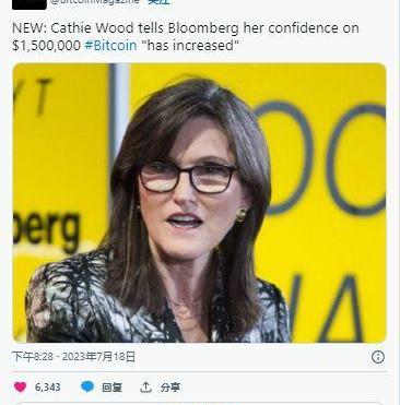在接受彭博社采訪時,CathieWood將她對2030年比特幣的價格預估修改為150萬美元。