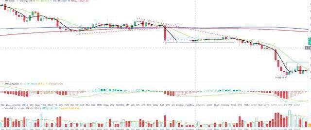 從日k線圖上,不難發現,今天k線就是一個大陽實體住,多方反彈力量非常強勢,但也收線在5日均線上,還沒有突破5日均線,可以說是,明天走勢非常關鍵,如果在收個大陽線,可能這邊會繼續上漲。綜上可以發現,如果明天還繼續反彈,可減倉為主,畢竟前方壓力位置太重,而且周線上也是空頭為主,可能這波反彈就是多頭最后的倔強,但也不排除直接拉爆,但做單需要服從大概率性東西,切忌追漲。