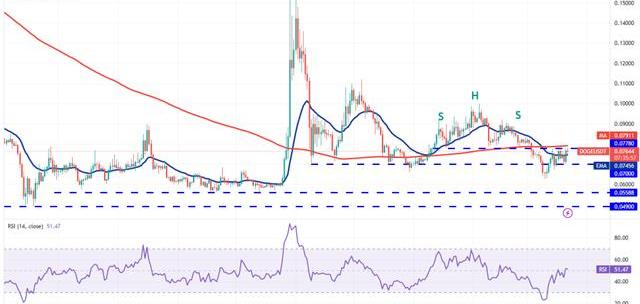 DOGE在過去幾天一直在0.07美元和200天均線之間交易。這表明多頭和空頭之間對下一個方向移動猶豫不決。