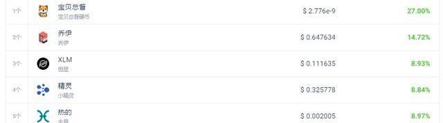 今天漲幅最大的是BabyDogeCoin、JOE和Stellar