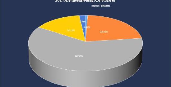 學歷方面,本科及以上學歷占比超過80%,其中本科占比將近60%,碩士學歷也超過20%,硬件人才的整體學歷水平較高。