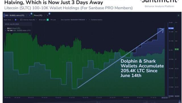 隨著減半事件的臨近,萊特幣鯨魚和鯊魚正在利用這個機會積累更多的加密貨幣。他們的積極購買熱潮表明了對萊特幣未來的信心,減半事件可能是這一看漲價格走勢背后的主要推動力。