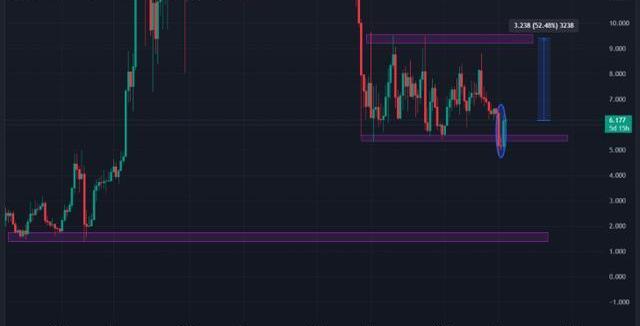 這一行動造成了低于5.5美元長期支撐位的偏離,通常會導致隨后強勁的上漲。