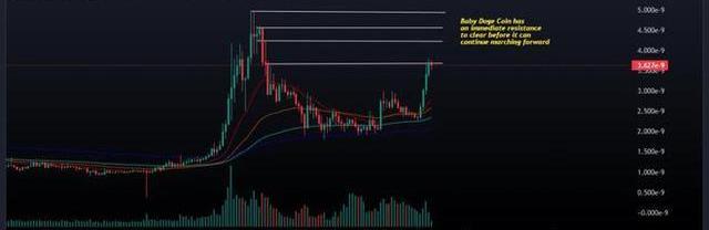 在產生一連串的綠色蠟燭之后,BabyDogecoin現在已經到了緊要關頭。如下所示,其前進的道路目前正受到直接阻力的阻礙。此時的拒絕可能會將資產價格推低至一周前的水平,圍繞其EMA支撐,具體取決于看跌壓力的強度。