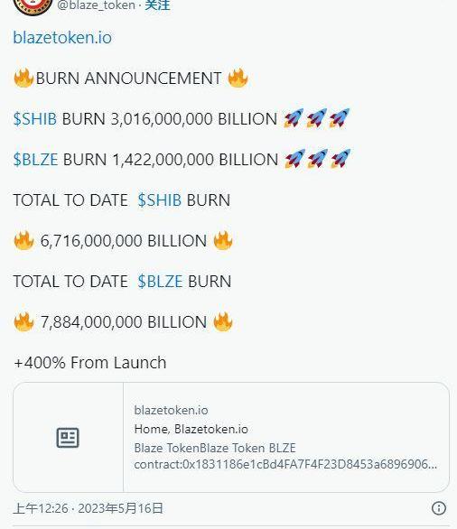 BlazeToken是柴犬社區最近上線的項目,單筆交易銷毀超過30億枚柴犬,24小時銷毀率達到23420%。最新的銷毀活動使該項目在啟動銷毀活動后的短短兩周內累計銷毀了67億個SHIB。