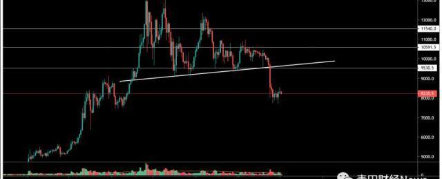 比特幣價格在6月26日觸及13900美元的高點之后,在K線圖中就逐漸形成了一個下降三角形形態,然后進行了長達三個月的整合。就在整合接近尾聲時,比特幣從9700美元附近突然開始暴跌,并且一度跌破了8000美元。