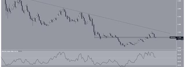 日線圖顯示,自6月18日以來,CRV一直在增加。在這次上漲期間,它設法收回了1.15美元區域,并在之后驗證其作為支撐位。此外,每日RSI已升至50以上。