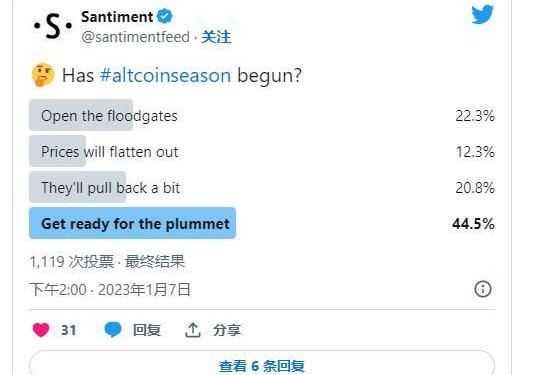 一方面,人們一直懷疑alts在經歷了整個2022年的悲慘倒臺后能否復蘇。這些懷疑者很可能仍然是對的。但是當您在我們的民意調查中看到這樣的結果時,您可以非常確信FUD已經成熟,可以進行反交易: