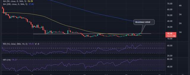 關于最近上漲的一個關鍵觀察是,多頭一直在變得更強。上行空間設法推動價格超過18.50美元水平,最高可達20美元。它跌至18.45美元的發稿時間價格,表明阻力位似乎仍然活躍。