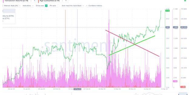 Santiment分析師已經發現加密市場的分歧可能導致以太坊的增長暫時停頓。以太坊Shapella升級成功完成后,山寨幣在最終回調前飆升至2,100美元的水平。