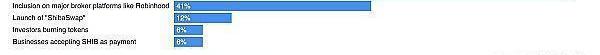 “炒作將繼續成為SHIB價值背后的驅動力,82%的小組成員表示memecoin炒作將對今年ShibaInu的價格產生重大影響。超過五分之二(41%)的人認為它被納入Robinhood等主要經紀商平臺幫助其獲得動力,12%的人表示ShibaSwap的推出。”