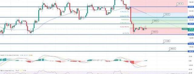 在4小時圖上,以太坊交易震蕩,維持在1,150美元至1,200美元的窄幅區間內。由于50日移動平均線在1,240美元的水平上延伸阻力,并且RSI處于賣出區域,以太坊有可能跌破1,150美元。