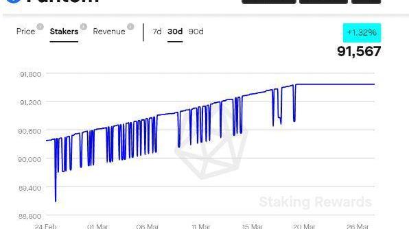 該數字代表平臺上的利益相關者總數增加了約1.32%。這些統計數據表明Fantom網絡吸引了有興趣參與該平臺質押活動的新用戶。