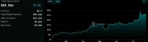 盡管去中心化交易所未能表現出色,但卡爾達諾的借貸協議卻取得了進展。該網絡最大的貸方LiquidFinance過去一個月的TVL增長了48%以上。