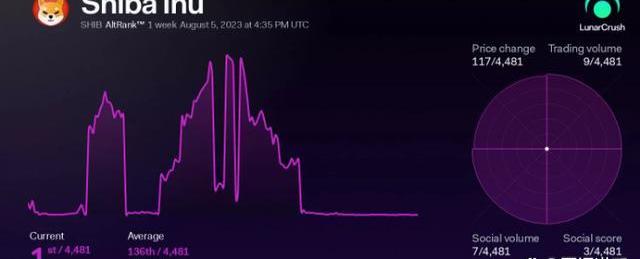 根據社交分析平臺LunarCrush的公告,柴犬實現了一個重要的里程碑。最新消息稱,芝幣在4880個山寨幣中排名第一。流行的模因幣的成就歸因于社交量的驚人增長。通常,模因幣的社交量增加會導致價格飆升,這里也發生了同樣的情況。價格攀升至0.00001美元,明顯遠離年度低點