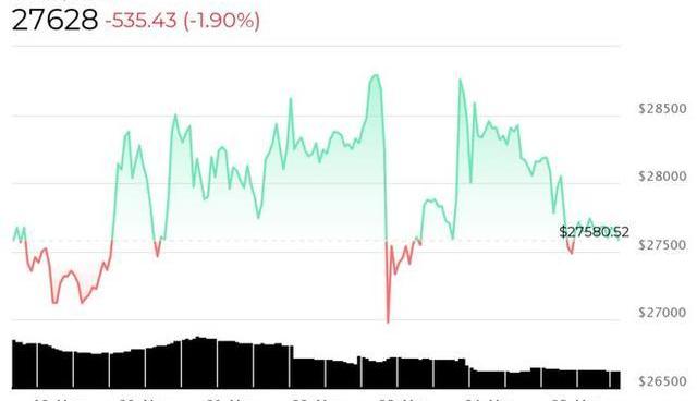 經過數周的反彈,比特幣面臨30,000美元的阻力。截至發稿時,BTC的交易價格為27,628美元,每日損失近2%。