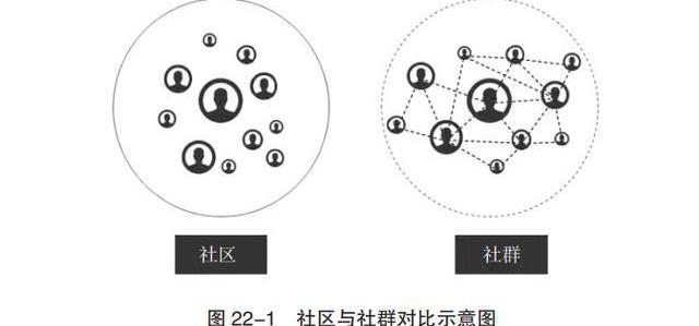 場景即產品,產品即社群。社群一旦形成,其商業價值就不可小覷,社群成員為產品而埋單,這比社區單純依靠第三方付費的動力更為堅實。如圖22-1所示,社區是一群人的松散聚集,社群是人、事、物在場景中的鏈結。