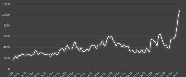 總持倉數量在最新一期數據中自9939張進一步上漲至10878張,該數值持續刷新歷史高點的勢頭仍在延續,此前價格短暫回調后的快速反彈繼續為市場的參與情緒「添柴加火」。
