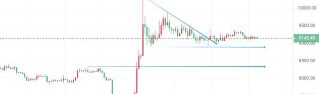 周末比特幣在跌破9180后加速下跌,一度逼近9000整數關口的支撐位,后又快速反彈至9230附近回落,行情在小區間內又走了一個來回。從當前的K線形態來看,近期的震蕩區間在9000-9400之間,9200則成了小區間內的多空輪換點。現貨持幣的可以再觀察觀察行情后期的走勢變化,短期內還會維持震蕩,但不排除會跌破9000繼續下跌的可能。分批買入,控制好持倉成本才是戰勝市場的法寶。短線操作建議在小區間內輕倉低吸高拋,靜待市場選擇方向,較為合適的額買入區間為8950-9050。