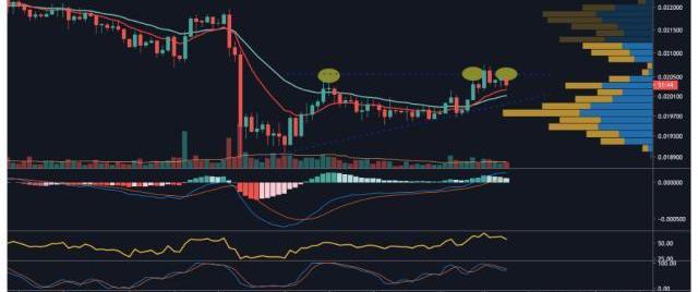 目前,價格在布林帶指標的20MA處受阻,如果價格突破第一個目標0.020984,則可能在0.022033的上方到達布林帶的上軌,從而上漲7.25%。由于籌碼分布在0.020984及以上顯示巨大的拋售壓力,因此這可能是一個巨大的挑戰。