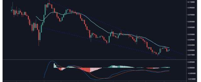 低于0.019637也可以成為支撐,并且該區域與布林線的下軌對齊。似乎有可能從上升楔形的趨勢線處開啟反彈。