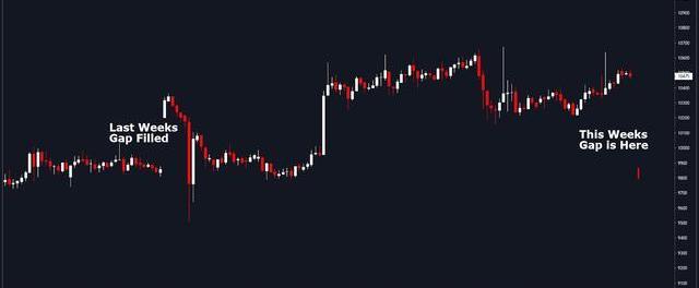 為牛市而戰,我們有一個事實,即芝加哥商品交易所上周五收于10475美元,因此,如果比特幣維持住目前的9800美元左右的價格,下周將留下675美元左右的一個缺口需要填補。