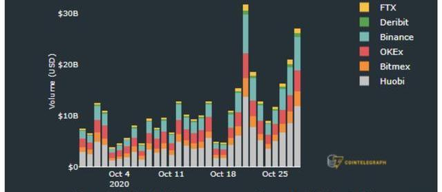 DeFi交易量的減少表明,交易員在一定程度上失去了對獲利退出的興趣,正在回歸比特幣。比特幣衍生產品的交易量不斷上升進一步證明了這一點。