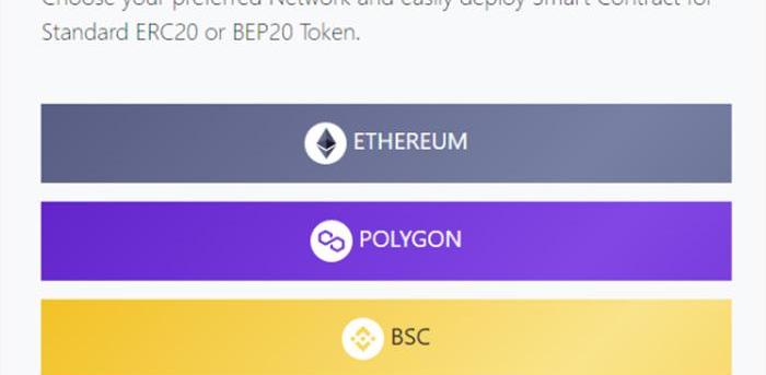 用戶必須指定代幣類型和將部署它的區塊鏈。他們可以為Ethereum和Polygon選擇ERC20代幣類型,或者為BinanceSmartChain選擇BEP20。