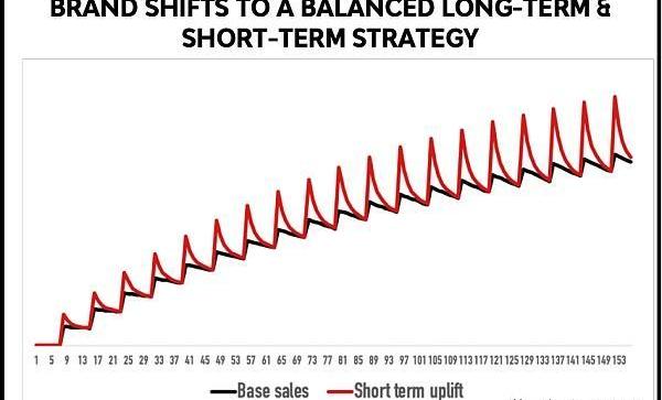 這種向注重短期業績的媒體轉變的問題是,雖然它可以提供銷售的急劇飆升,但其效果是短暫的。如果從時間上看,缺乏對品牌建設的投資將導致整體品牌力量的降低,而這又會產生降低媒體業績影響的連鎖反應。因此,品牌最終會陷入業績下降的趨勢。