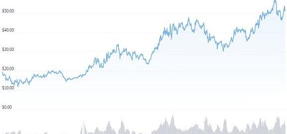 進入2022年來,通過分享本身創造的利潤而不是代幣釋放已被證明對流動性提供者和治理代幣持有者極具吸引力。最具代表性的DeFi協議是GMX。下圖為其代幣GMX價格在最近3個月的逆勢增長。